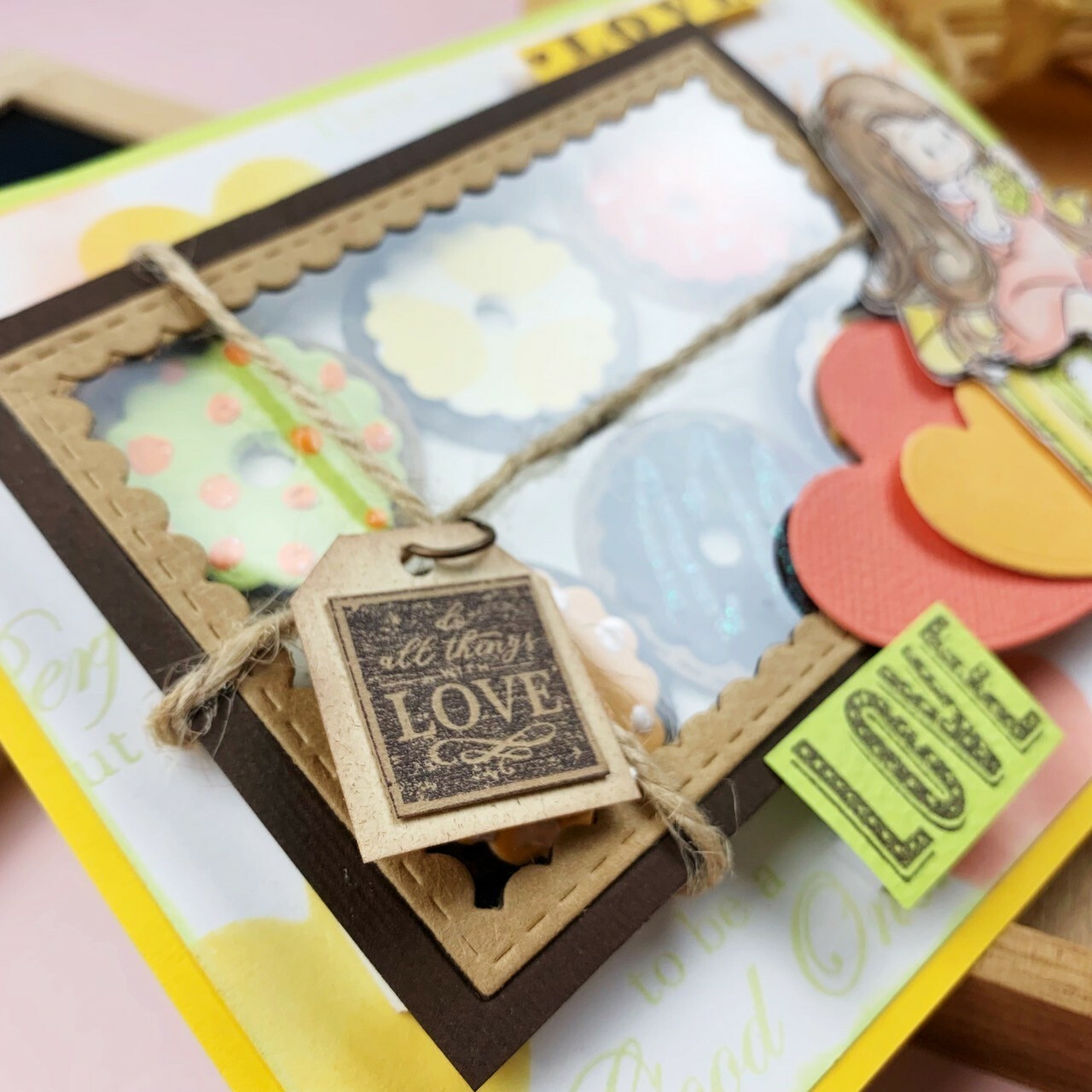 內波浪長方框刀模-貨號: CDK-081』裁切中空,深咖啡色背面貼上透明片(投影片),再把刀模切下來的形狀貼回在透明上。