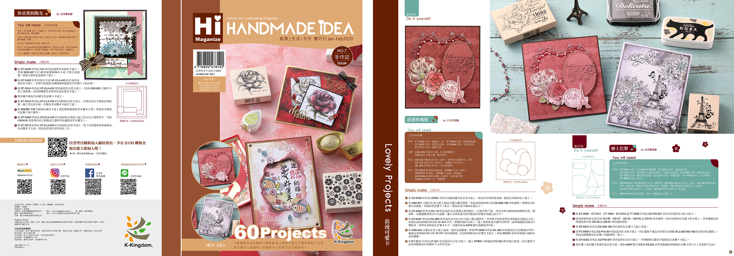 7支作品教學影片讓你輕鬆學做、2集新年組合刀模教學分享;以及新年賀卡 X 浪漫情人節創意卡 X 新款花卉印章創意卡大集合