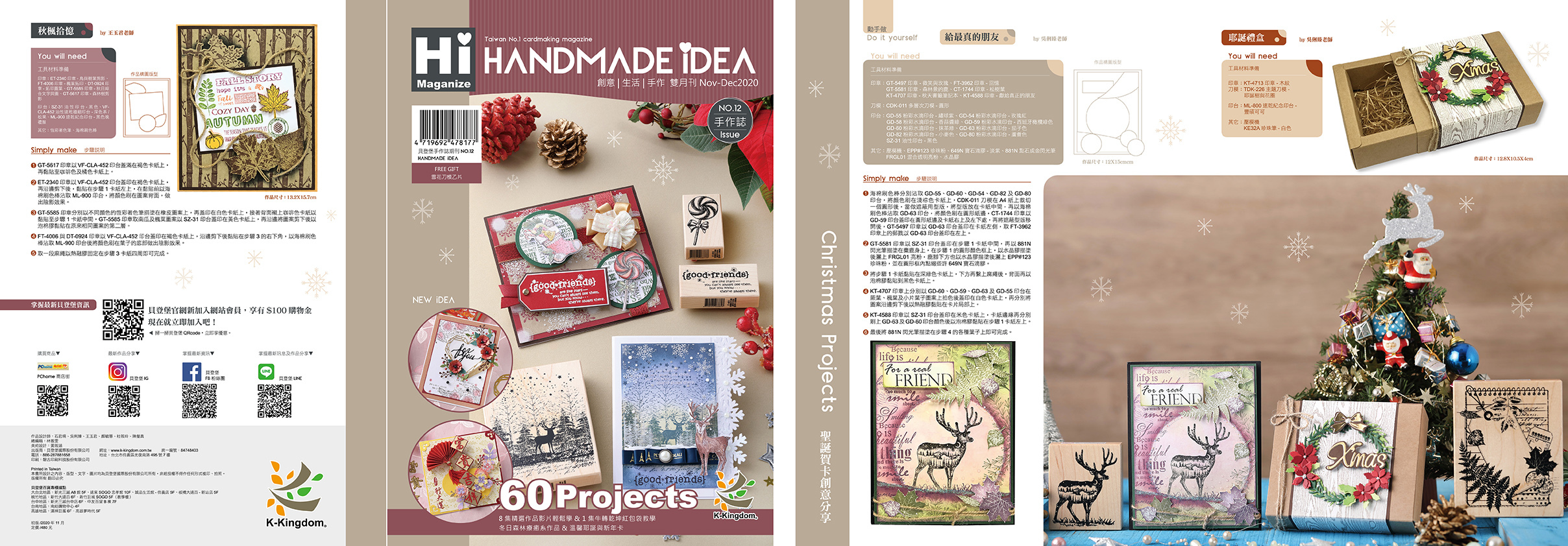 60件豐富作品、6支精選教學影片帶你做;歡樂耶誕主題X 秋冬自然系 X 新年祈福手作 帶你看!另贈楓葉造型刀模乙個