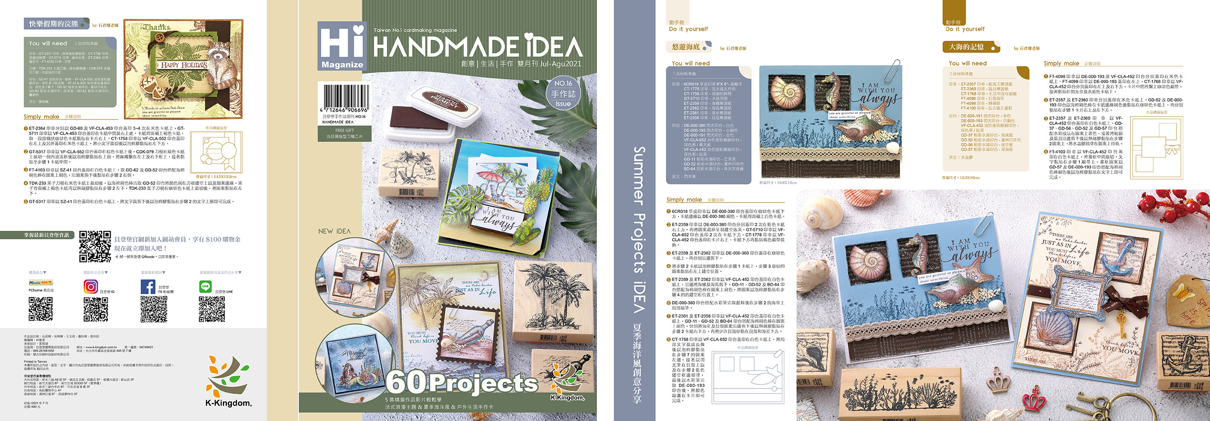 60件豐富作品、7支精選教學影片帶你做;以及海洋風情卡、可愛動物卡大集合