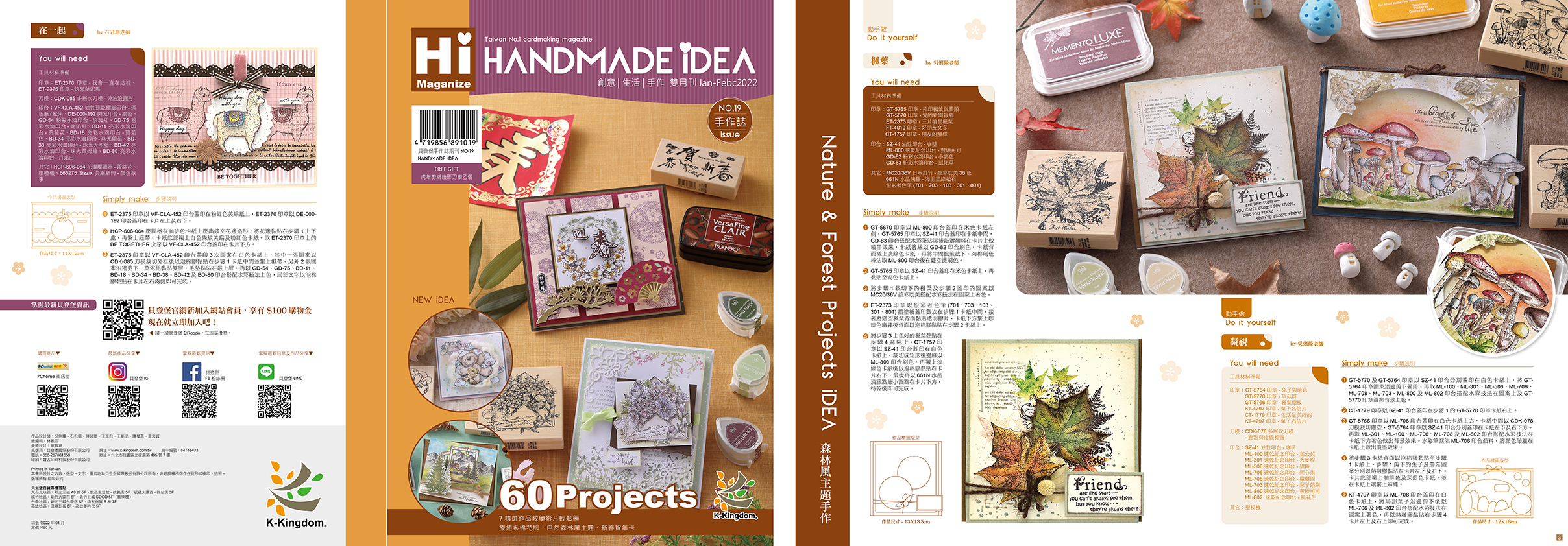 60件豐富作品、6支精選教學影片帶你做;早秋風情X 自然森林 X 預告耶誕手作 帶你看 另贈韓國海洋之星卡紙7張