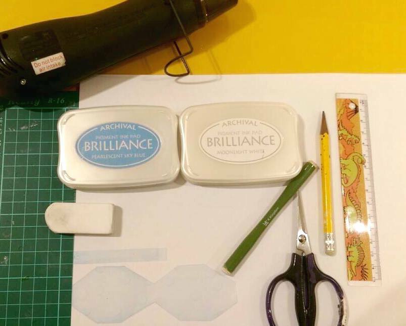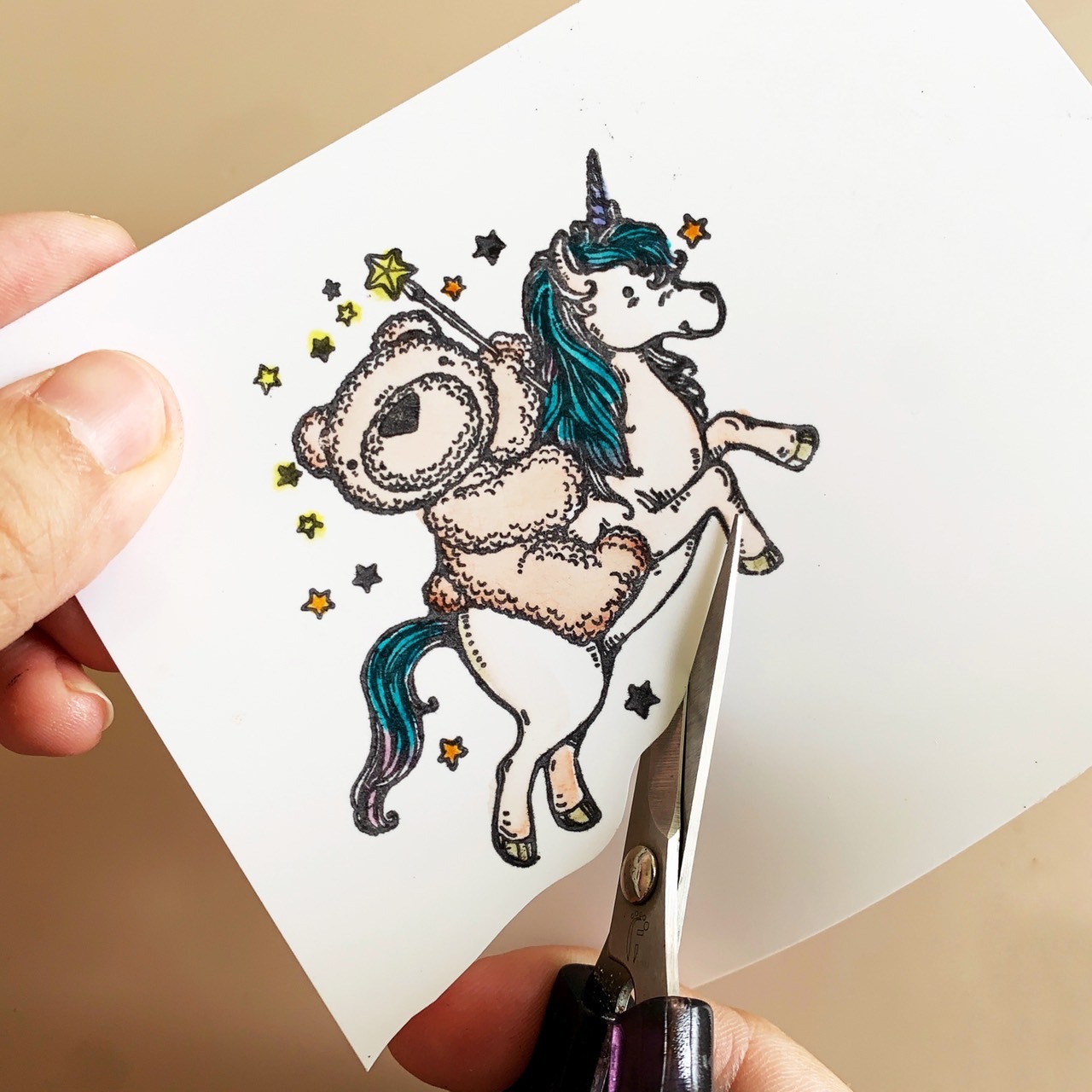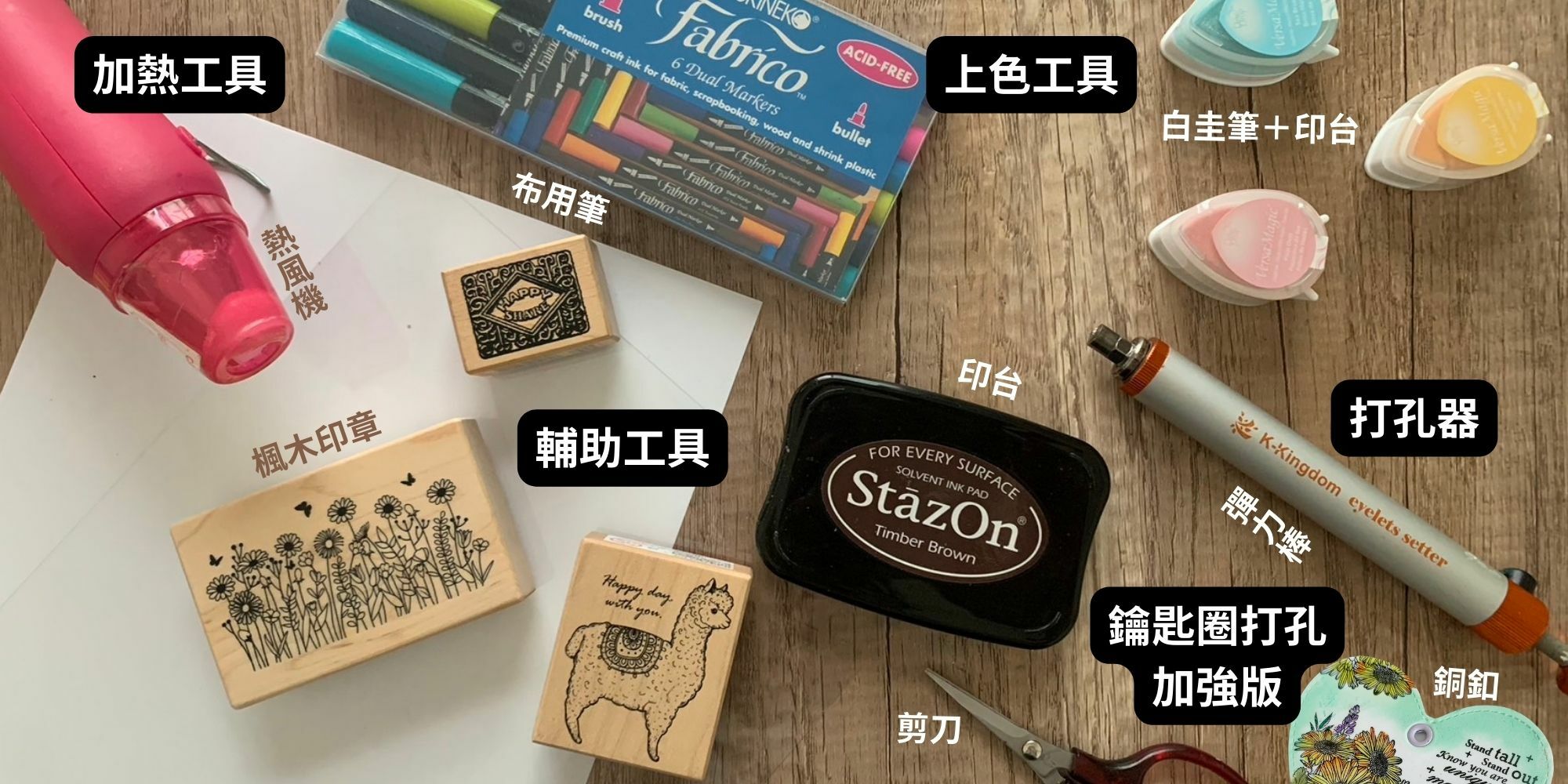 老師提醒:如需用到示範圖片裡的布用筆,需要用濕紙巾先擦拭白色熱縮片粗糙面,等乾燥後再蓋章上色