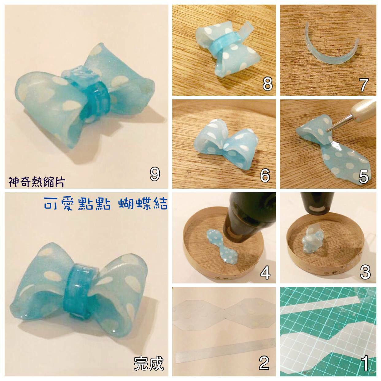 琉璃壓印技法:(琉璃+烙印技法) 在加熱過程中熱縮片接近縮小平整時,可趁質地較軟時,將已沾上顏料的印章,用力蓋印在熱縮片上,待冷卻後即可有明顯的琉璃壓印效果。