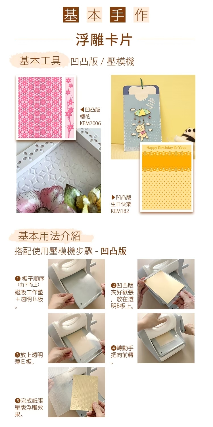 使用壓模機將卡紙壓凸,可輕鬆製複雜圖案的浮雕效果!