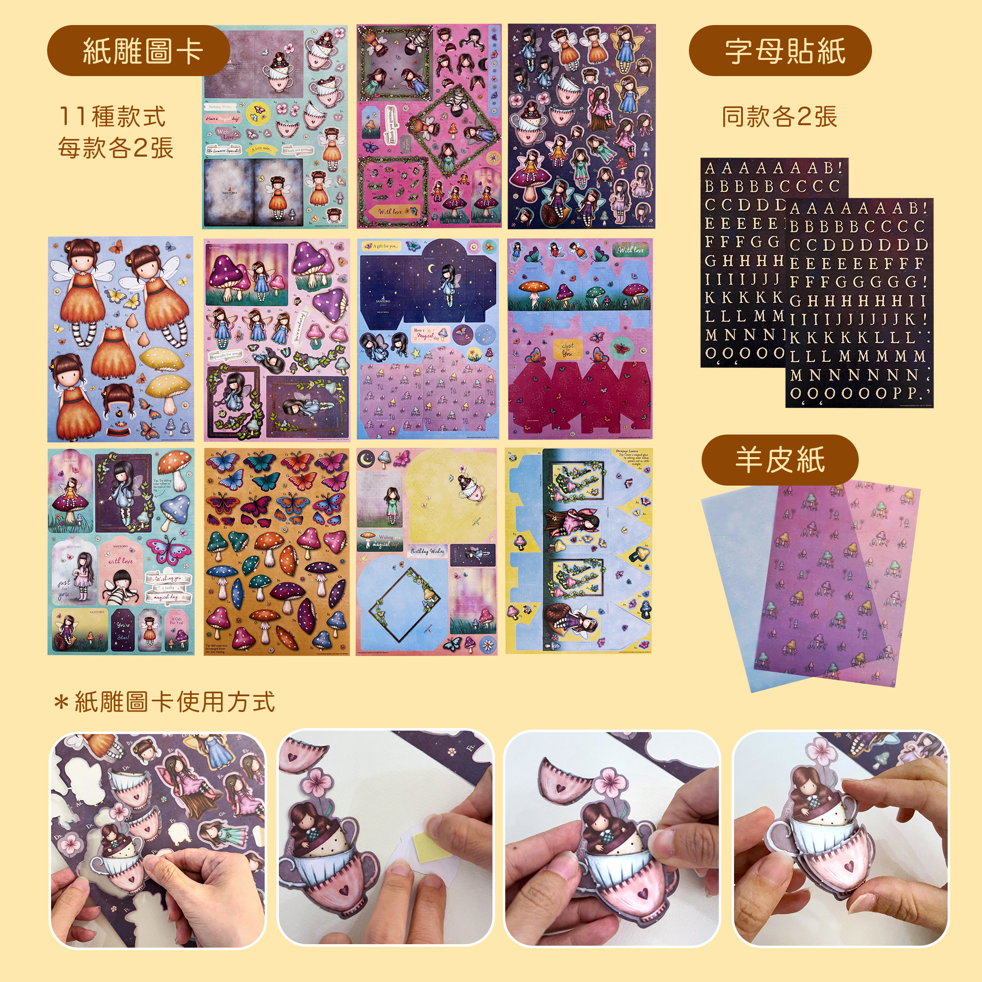Gorjuss 紙雕圖卡,皆依照設計編排了字母順序(如 A~F),建議依序摘下使用,以呈現圖層間的立體層次感。