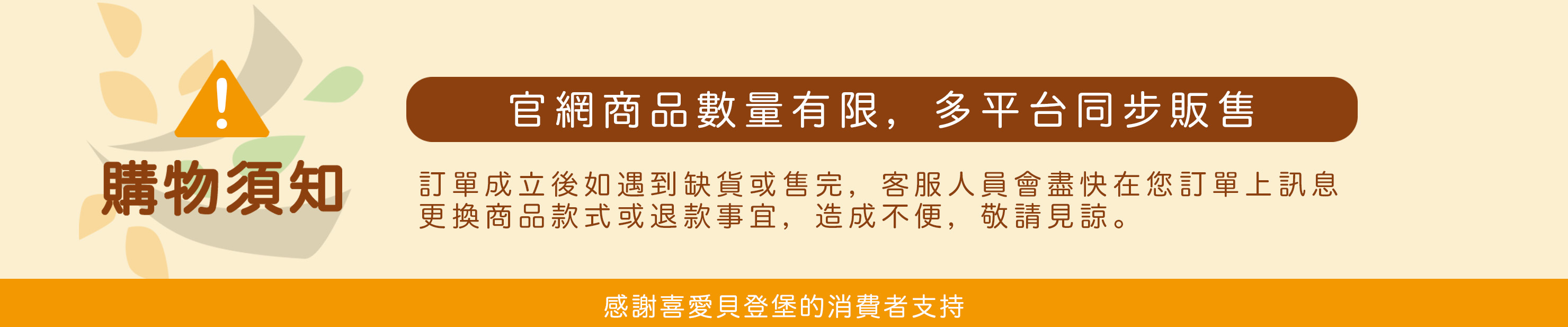官網商品數量有限,多平台同步販售,訂單成立後如遇缺貨或售完等狀況,客服人員會盡速與您訊息更換商品或退款事宜,造成不便敬請見諒