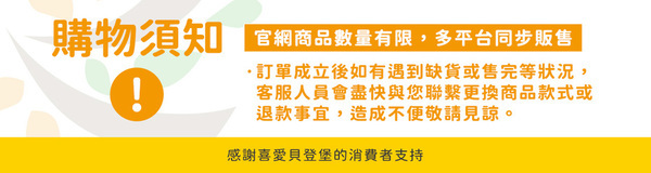 官網商品數量有限,多平台同步販售,訂單成立後如遇缺貨或售完等狀況,客服人員會盡速與您訊息更換商品或退款事宜,造成不便敬請見諒