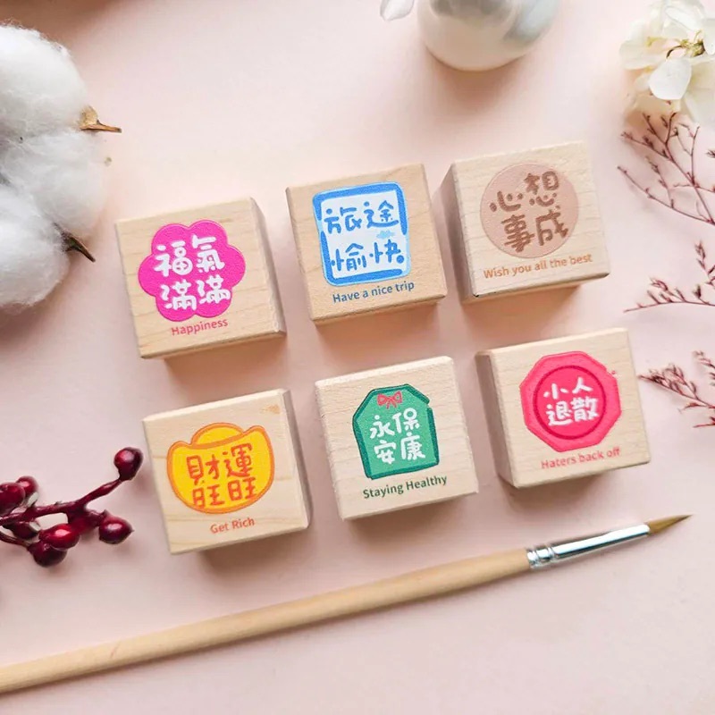 micia 彩色楓木印章【 許願戳章 】永保安康戳章 D088