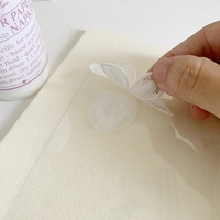 1.將轉印膠上在透明藝術膠片     2.將蕾絲花黏貼固定至膠變透明     3.膠完全乾後依照花形輪廓剪下